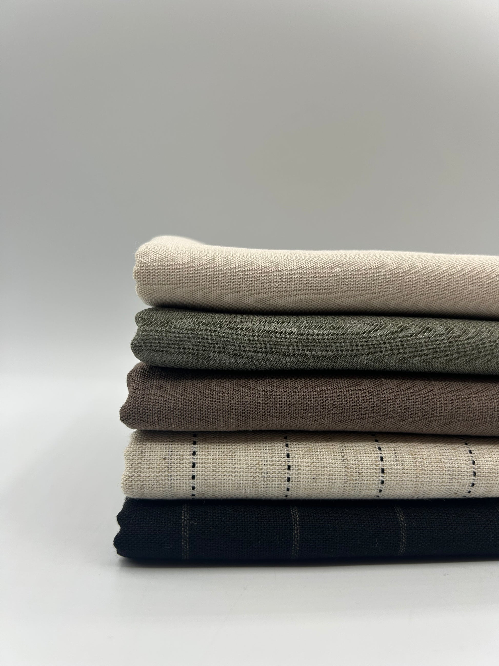 Viskon ve keten karışımı bu özel kumaş, her iki elyafın da en iyi özelliklerini bir araya getirir. Ketenin doğal, rustik dokusuyla viskonun yumuşak ve dökümlü yapısı birleşerek hem estetik hem de konforlu bir kumaş deneyimi sunar.